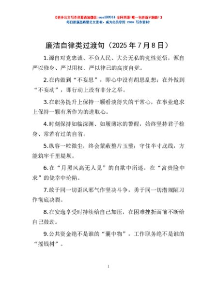 / 廉洁自律类过渡句(2025年7月8日)