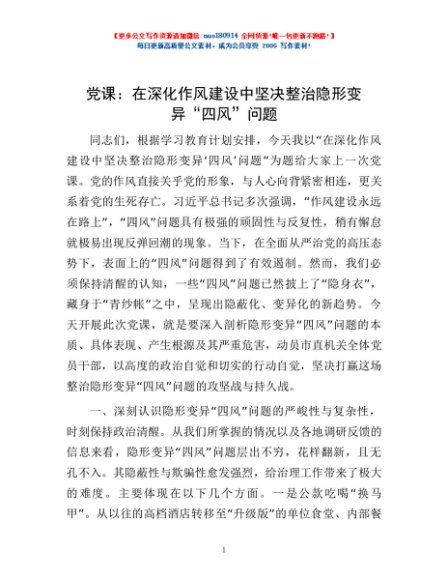 / 党课:在深化作风建设中坚决整治隐形变异“四风”问题