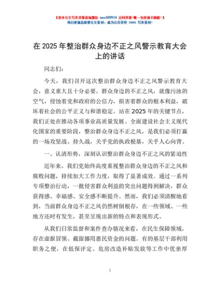 / 在2025年整治群众身边不正之风警示教育大会上的讲话