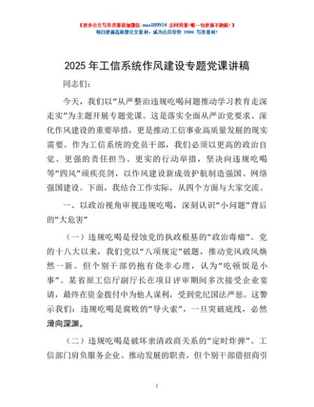 / 2025年工信系统作风建设专题党课讲稿