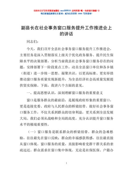 / 副县长在社会事务窗口服务提升工作推进会上的讲话