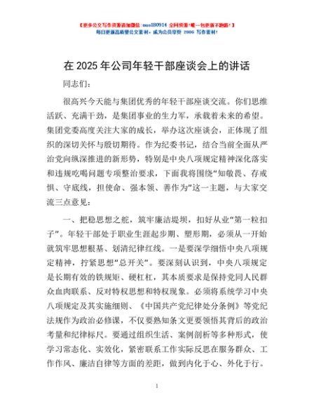 / 在2025年公司年轻干部座谈会上的讲话