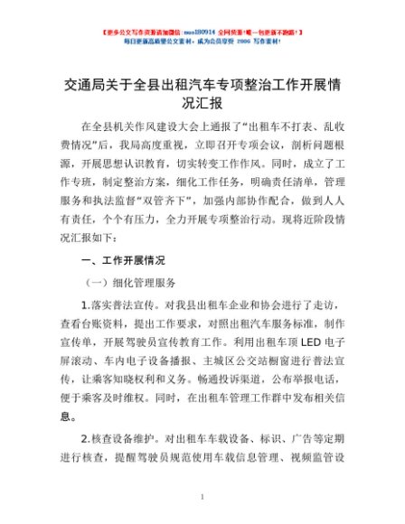 / 交通局关于全县出租汽车专项整治工作开展情况汇报