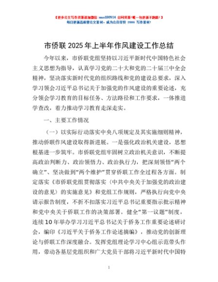 / 市侨联2025年上半年作风建设工作总结