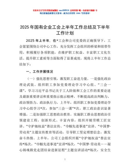 / 2025年国有企业工会上半年工作总结及下半年工作计划