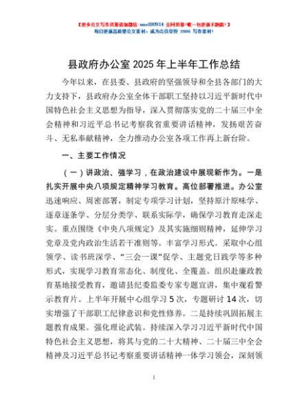/ 县政府办公室2025年上半年工作总结
