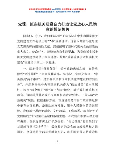 / 党课:抓实机关建设 奋力打造让党放心人民满意的模范机关