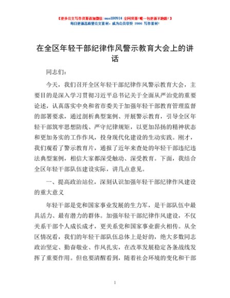 / 在全区年轻干部纪律作风警示教育大会上的讲话