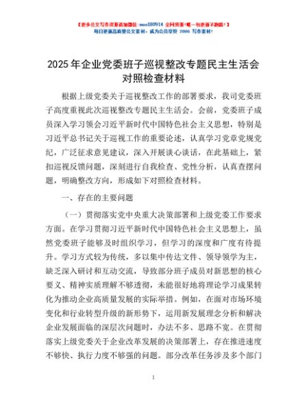 / 2025 年企业党委班子巡视整改专题民主生活会对照检查材料