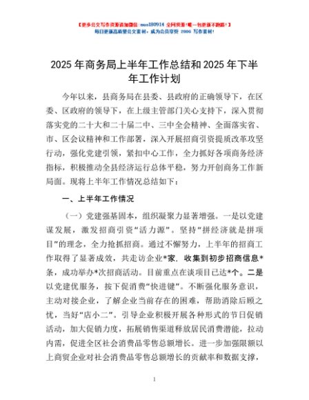 / 2025年商务局上半年工作总结和2025年下半年工作计划