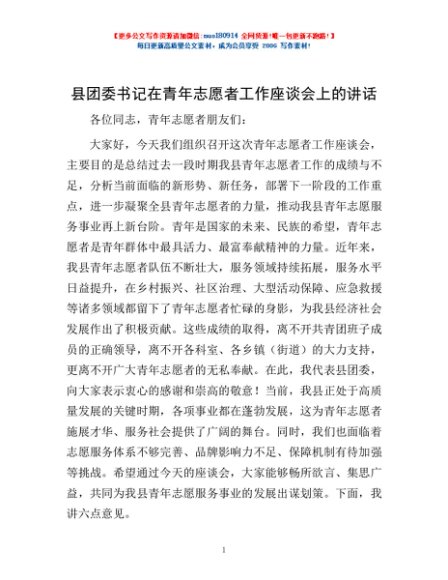 / 县团委书记在青年志愿者工作座谈会上的讲话