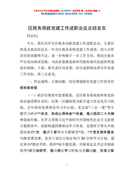 / 区税务局抓党建工作述职会议总结发言