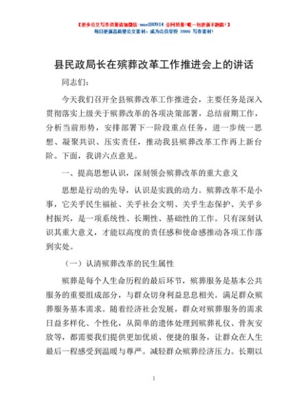 / 县民政局长在殡葬改革工作推进会上的讲话