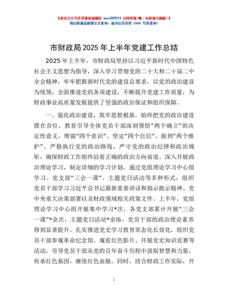 / 市财政局2025年上半年党建工作总结