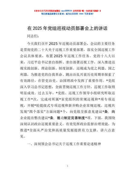 / 在2025年党组巡视动员部署会上的讲话