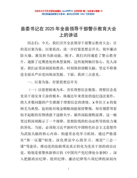 / 县委书记在2025年全县领导干部警示教育大会上的讲话