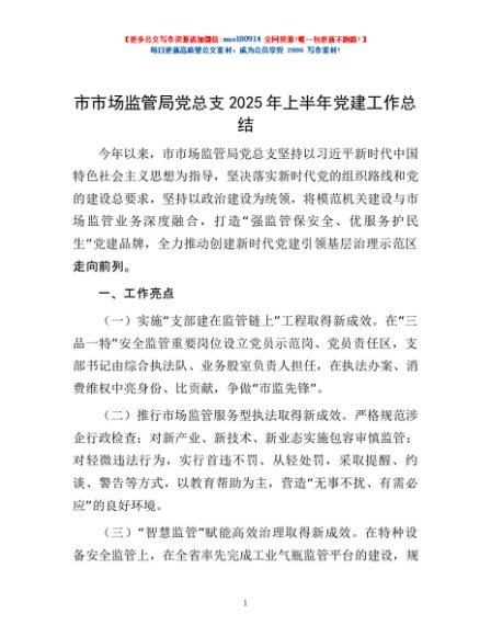 / 市市场监管局党总支2025年上半年党建工作总结