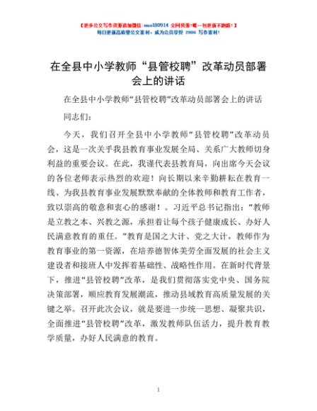 / 在全县中小学教师“县管校聘”改革动员部署会上的讲话
