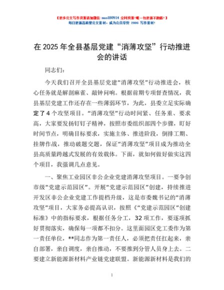 / 在2025年全县基层党建“消薄攻坚”行动推进会的讲话