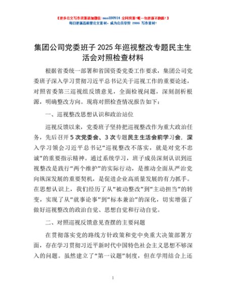 / 集团公司党委班子2025年巡视整改专题民主生活会对照检查材料