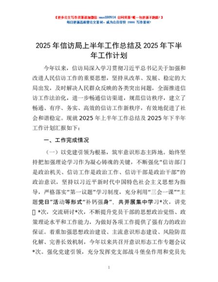 / 2025年信访局上半年工作总结及2025年下半年工作计划