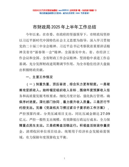 / 市财政局2025年上半年工作总结