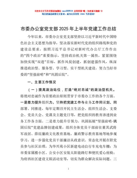/ 市委办公室党支部2025年上半年党建工作总结