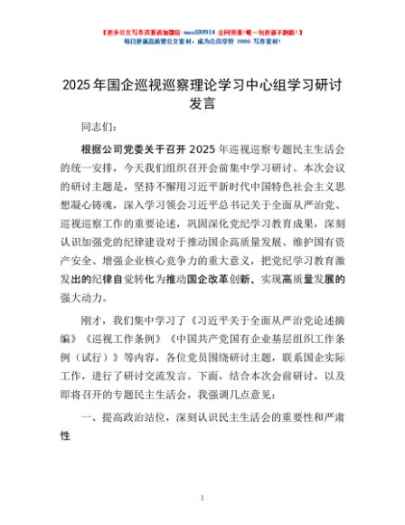 / 2025年国企巡视巡察理论学习中心组学习研讨发言