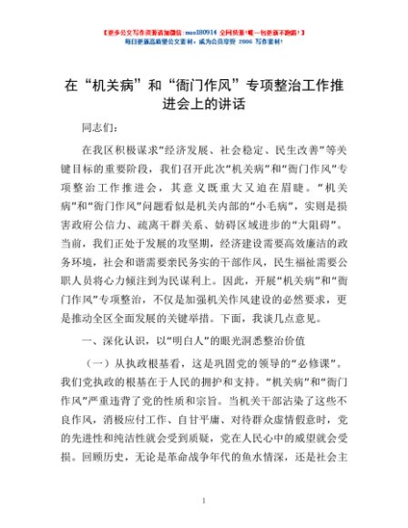 / 在“机关病”和“衙门作风”专项整治工作推进会上的讲话