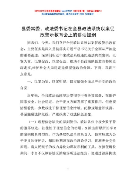 / 县委常委、政法委书记在全县政法系统以案促改警示教育会上的讲话提纲