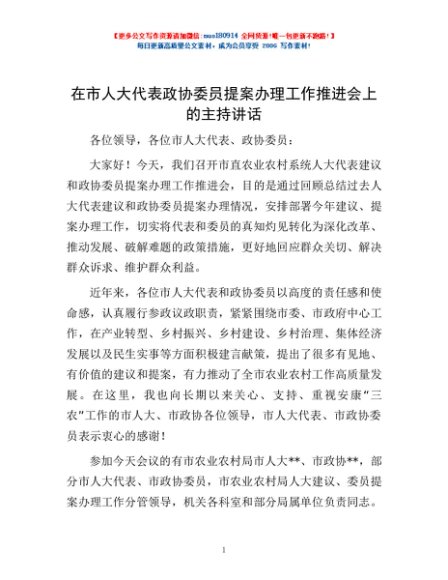 / 在市人大代表政协委员提案办理工作推进会上的主持讲话