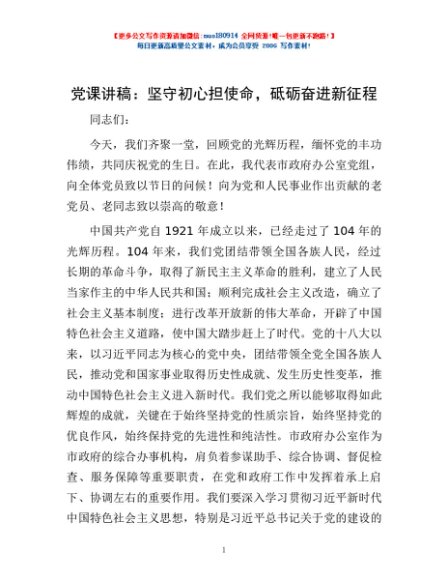 / 党课讲稿:坚守初心担使命,砥砺奋进新征程