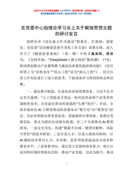 / 在党委中心组理论学习会上关于解放思想主题的研讨发言