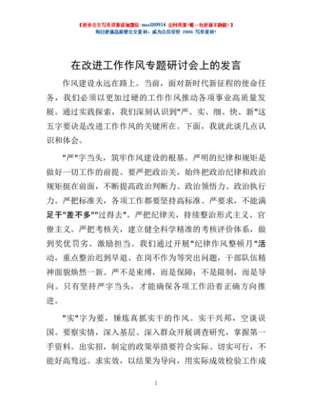 / 在改进工作作风专题研讨会上的发言