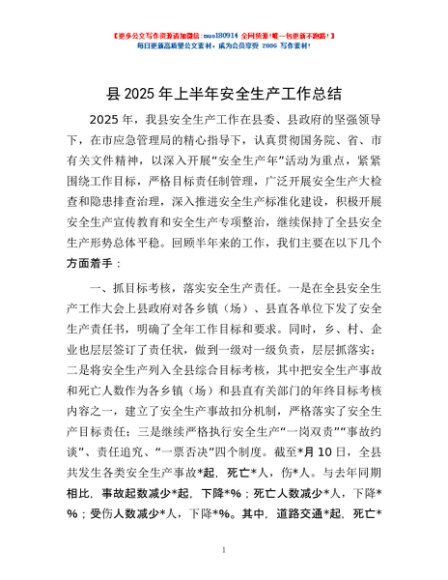 / 县2025年上半年安全生产工作总结