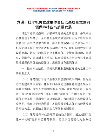 党课:扛牢机关党建主体责任 以高质量党建引领保障林业高质量发展