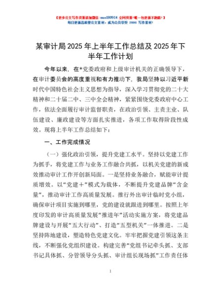 / 某审计局2025年上半年工作总结及2025年下半年工作计划