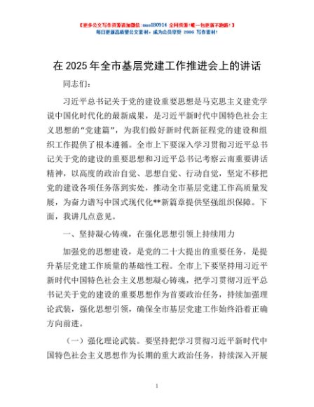 / 在2025年全市基层党建工作推进会上的讲话