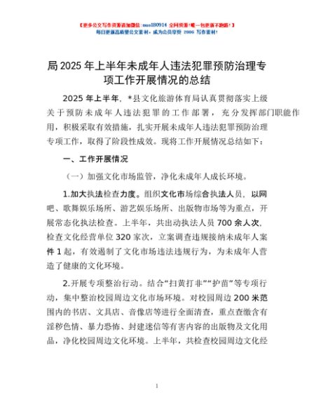 / 局2025年上半年未成年人违法犯罪预防治理专项工作开展情况的总结