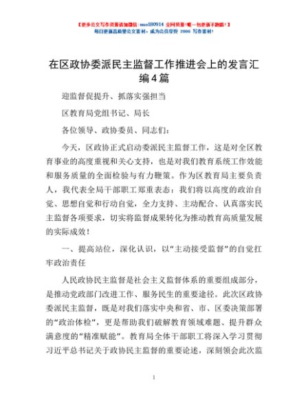 / 在区政协委派民主监督工作推进会上的发言汇编4篇