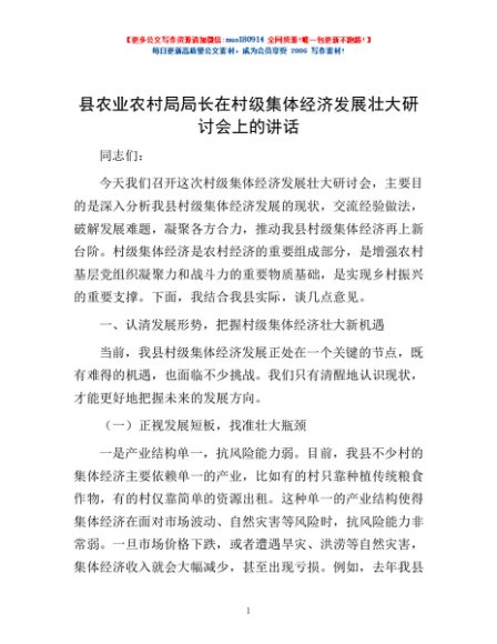 / 县农业农村局局长在村级集体经济发展壮大研讨会上的讲话