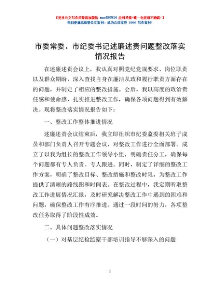 / 市委常委、市纪委书记述廉述责问题整改落实情况报告