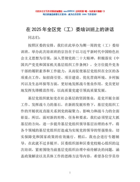 / 在2025年全区党(工)委培训班上的讲话