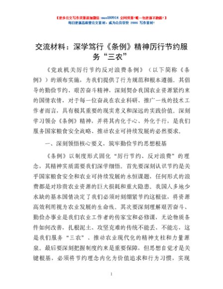 / 交流材料:深学笃行《条例》精神 厉行节约服务“三农”