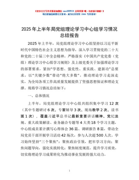 / 2025年上半年局党组理论学习中心组学习情况总结报告