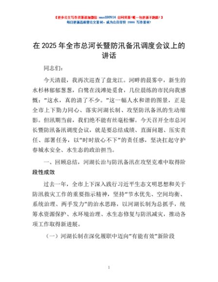 / 在2025年全市总河长暨防汛备汛调度会议上的讲话