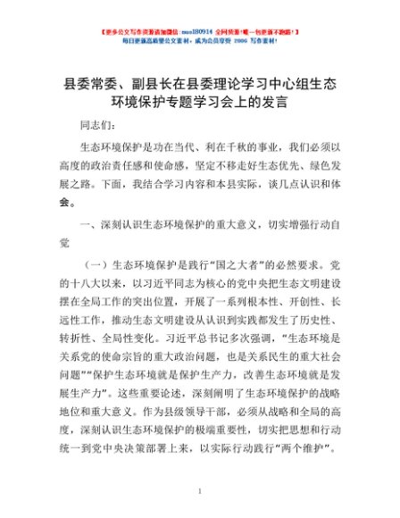 / 县委常委、副县长在县委理论学习中心组生态环境保护专题学习会上的发言
