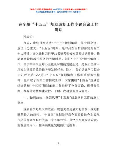 / 在全州“十五五”规划编制工作专题会议上的讲话