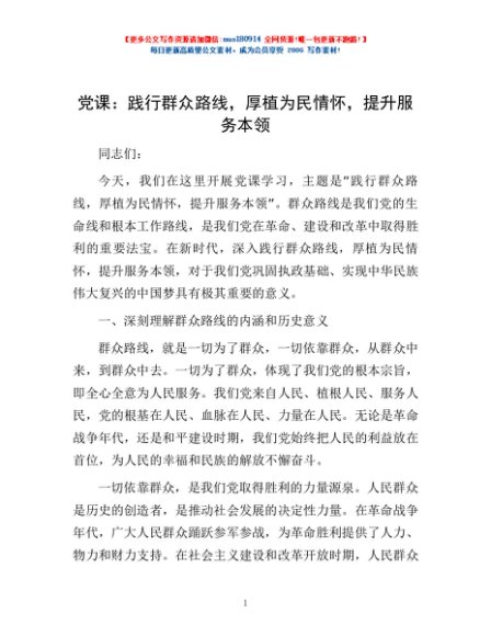 党课:践行群众路线,厚植为民情怀,提升服务本领