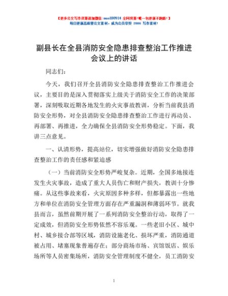 / 副县长在全县消防安全隐患排查整治工作推进会议上的讲话